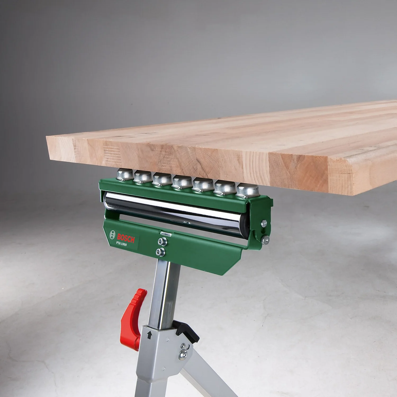 The PTA 1000 workbench provides flexibility on the job, especially for projects with large workpieces. Its roller support makes it easy to slide materials towards and away from the tool when sawing lengthwise while its ball support makes it simple to turn workpieces to the ideal angle for cutting. The bench’s height can be adjusted between 700 mm and 1,150 mm for additional versatility on the job.