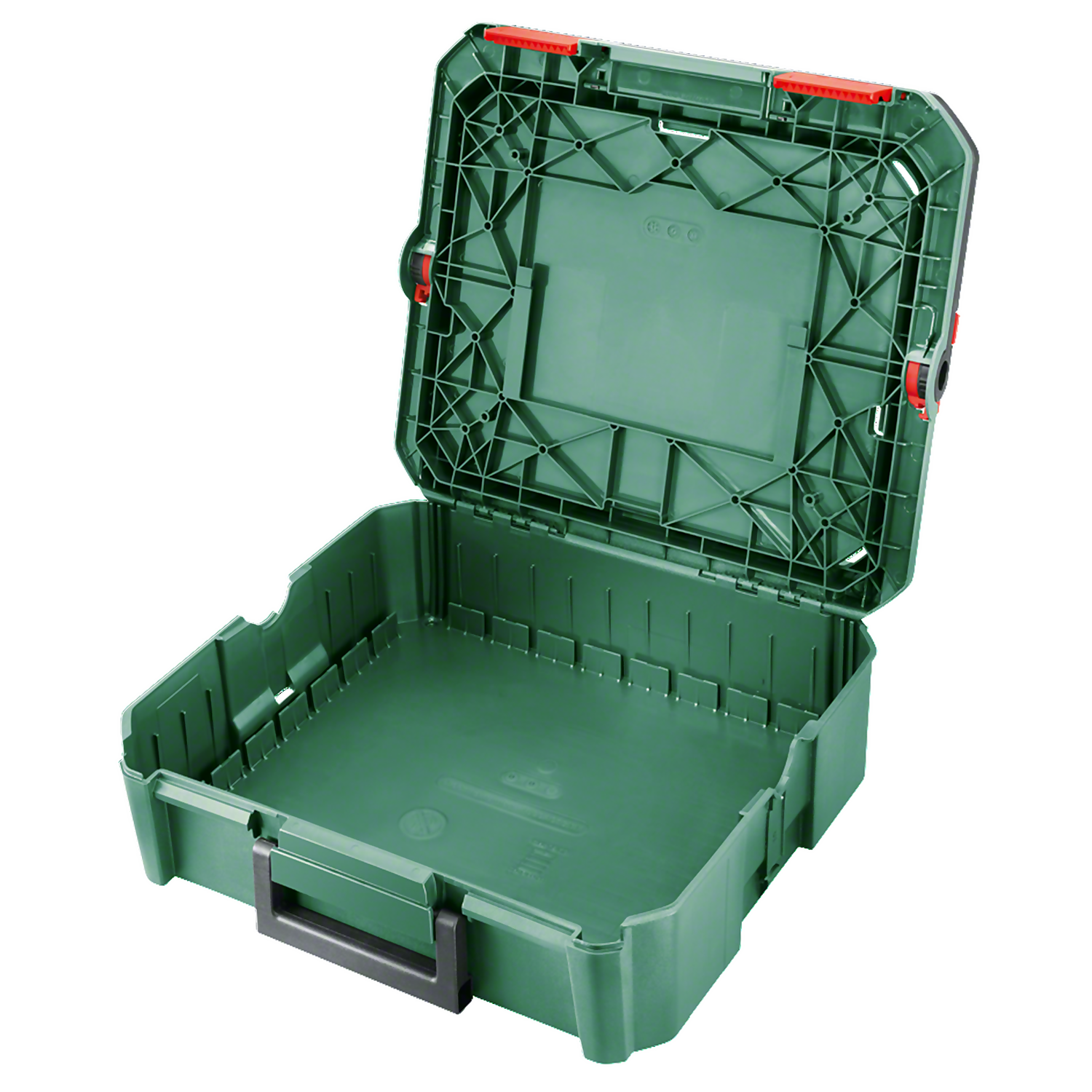 The small SystemBox can be used as perfect storage for small and medium sized individual items. The box is expandable with compatible accessory boxes of different sizes and a lid box. The SystemBox can be used separately or different SystemBoxes can be attached to one another and connected together. With the integrated vertical and horizontal handle the SystemBoxes are easy to transport to any workspace.