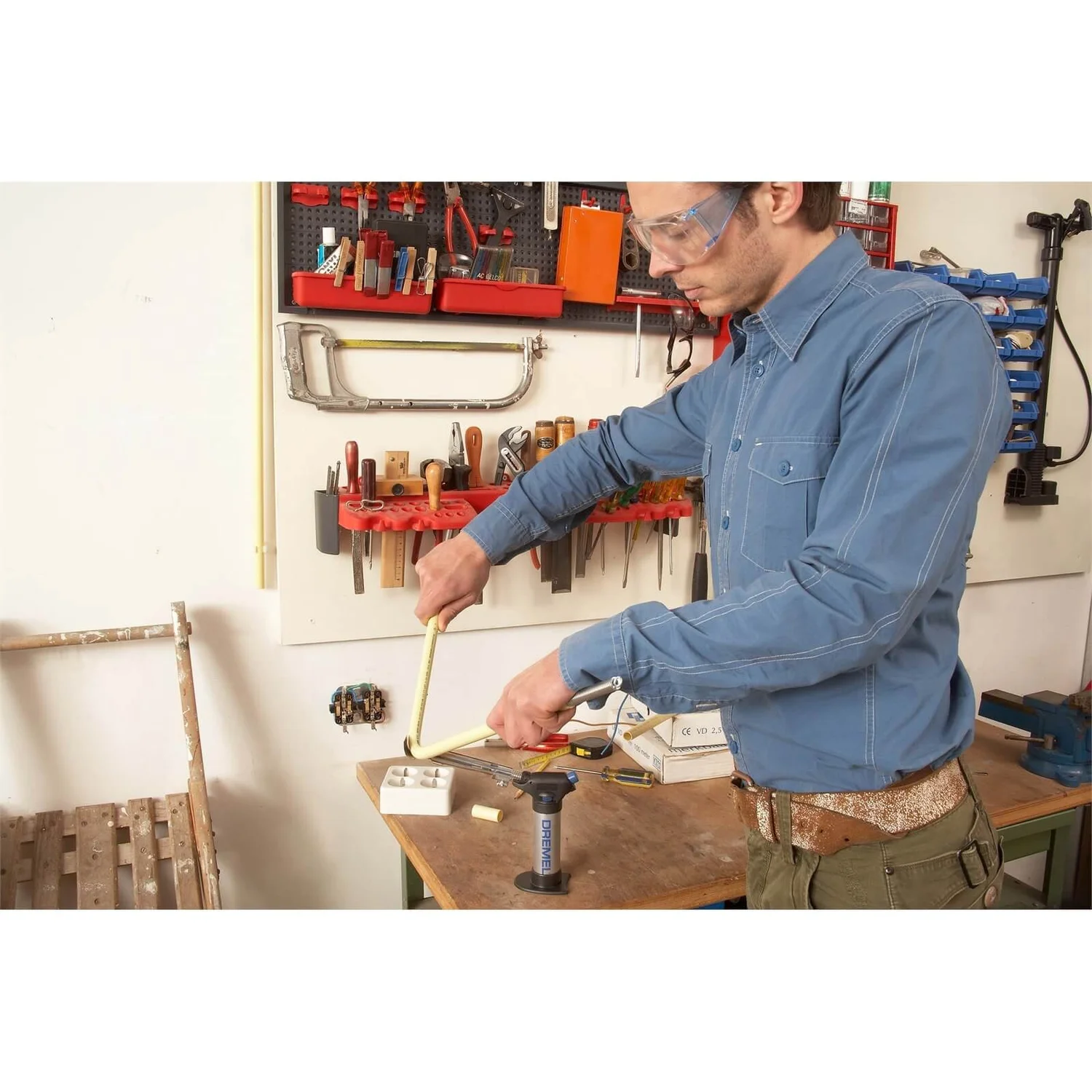 | Product Contains | Dremel Versa Flame Catalyst Soldering tip/ Flame extension piece. Deflector Soldering tin with blue cap. Soldering sponge + sponge box. Instruction manual Tin storage case. |