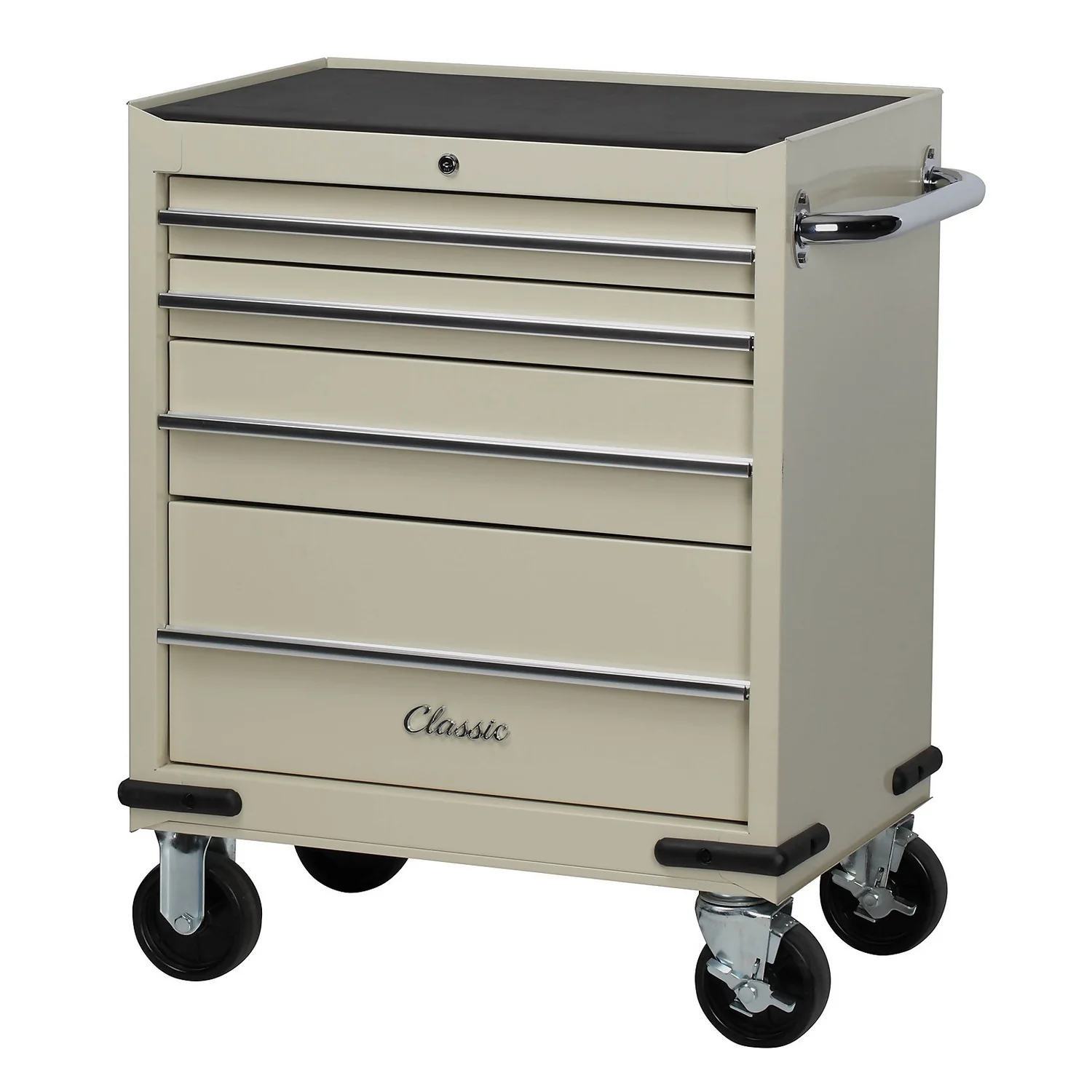 - Classic 26″ tool trolley design to suit classic car owners and car enthusiasts with 5″ locking castors and lockable ball bearing drawer slides for a smooth secure operation