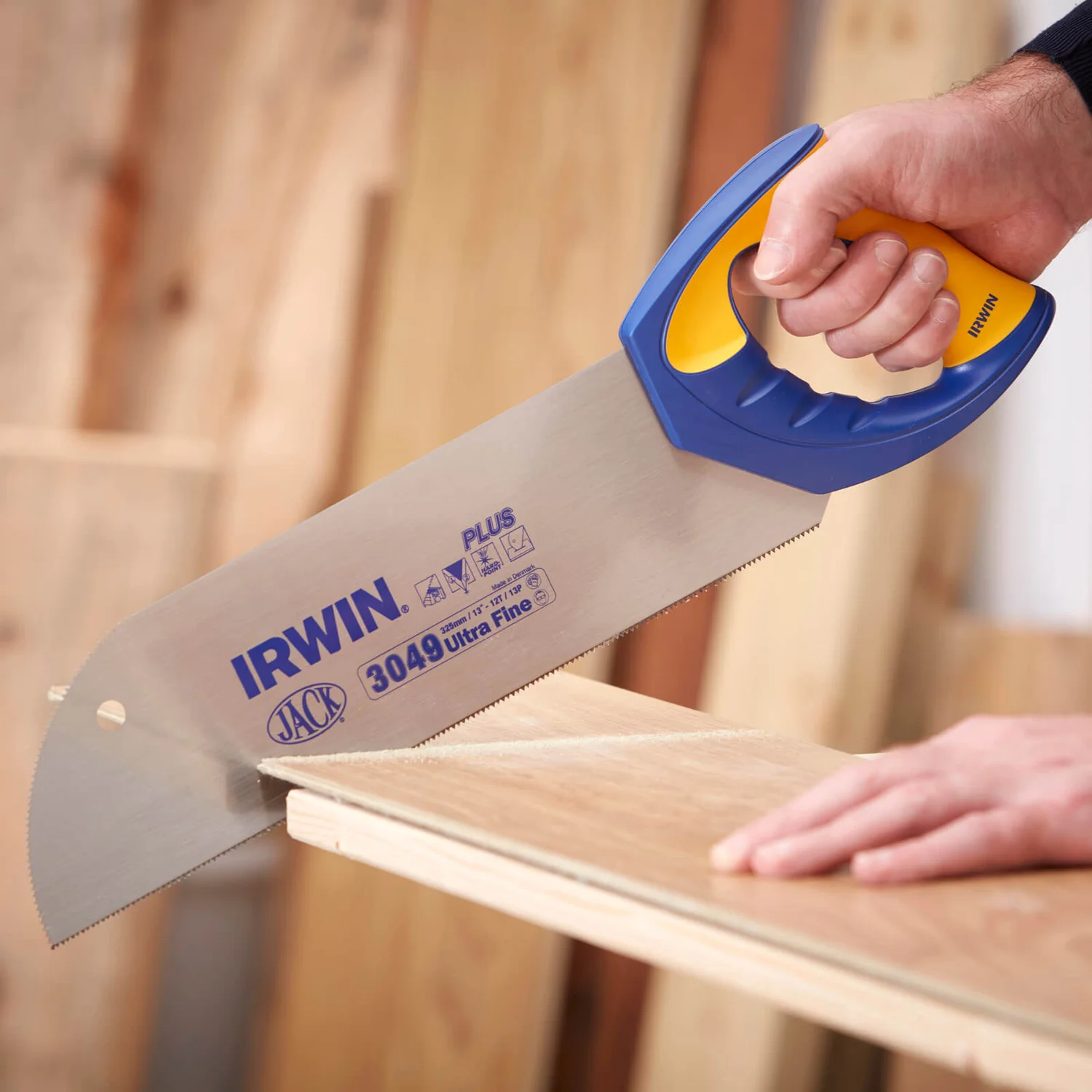 The IRWIN Jack Floorboard Saw 13”/325mm offers a very fine cross cutting tooth design. The nose teeth can be used to start cutting in the middle of a thin piece of veneer. The PRO- TOUCH soft grip handle delivers improved durability and comfort. The saw is ideal for fine cuts in veneer, mouldings, plywood and PVC.