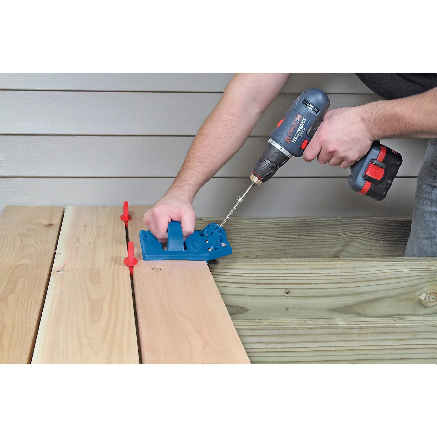 - Three hardened-steel drill guides let you install deck boards in a variety of hard-to-reach areas