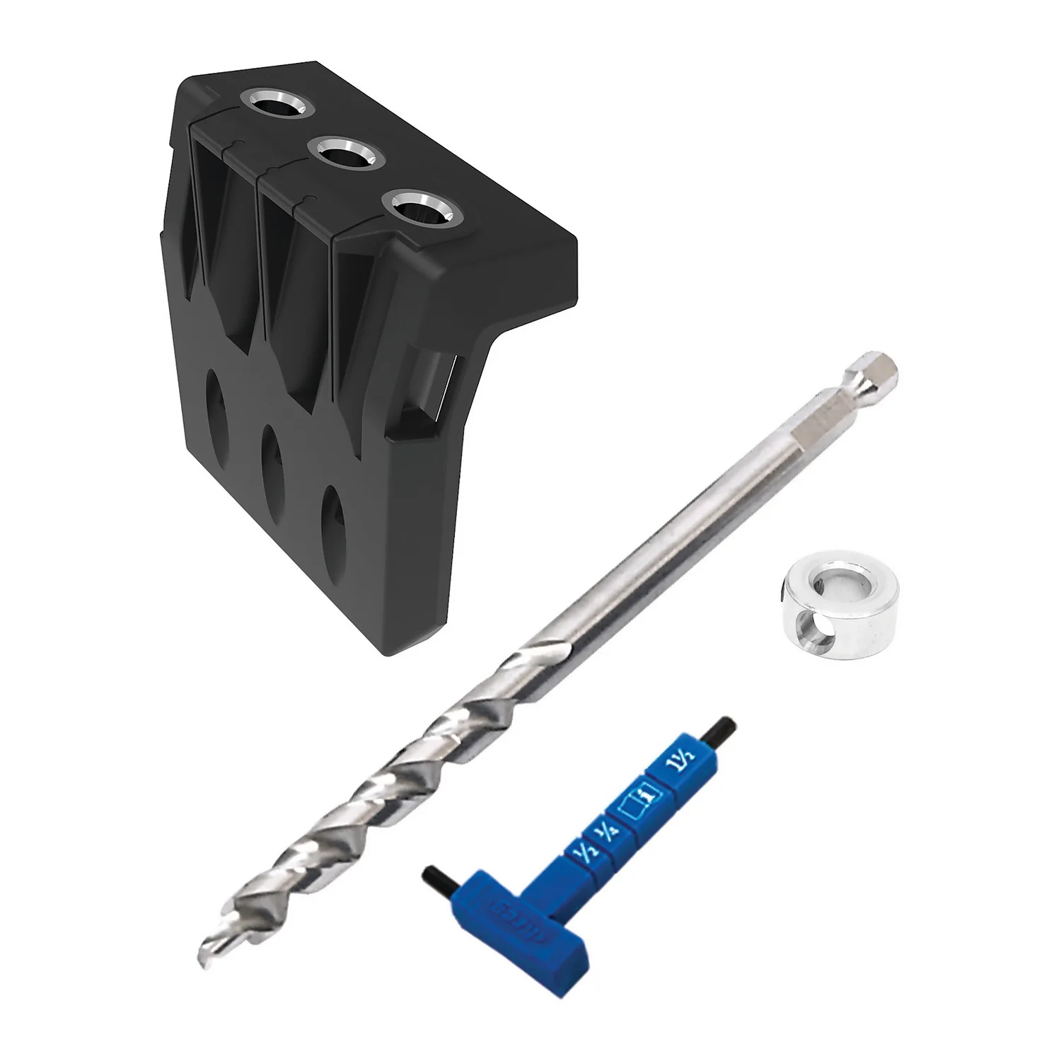 | Product Contains | (1) Micro-Pocket Drill Guide Block, (1) Easy-set Micro-Pocket Drill Bit, (1) Stop Collar, (1) Material Thickness Gauge |
