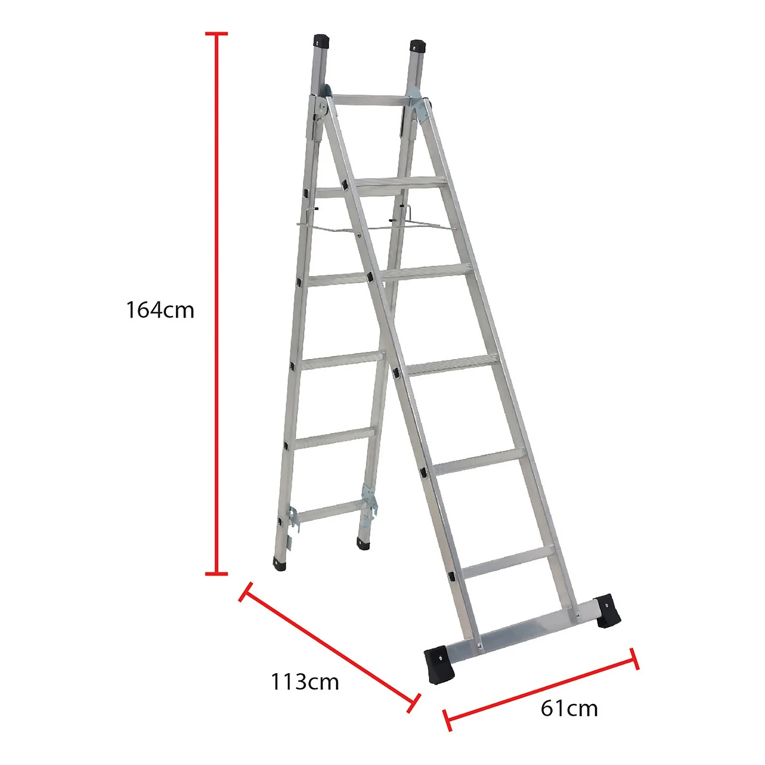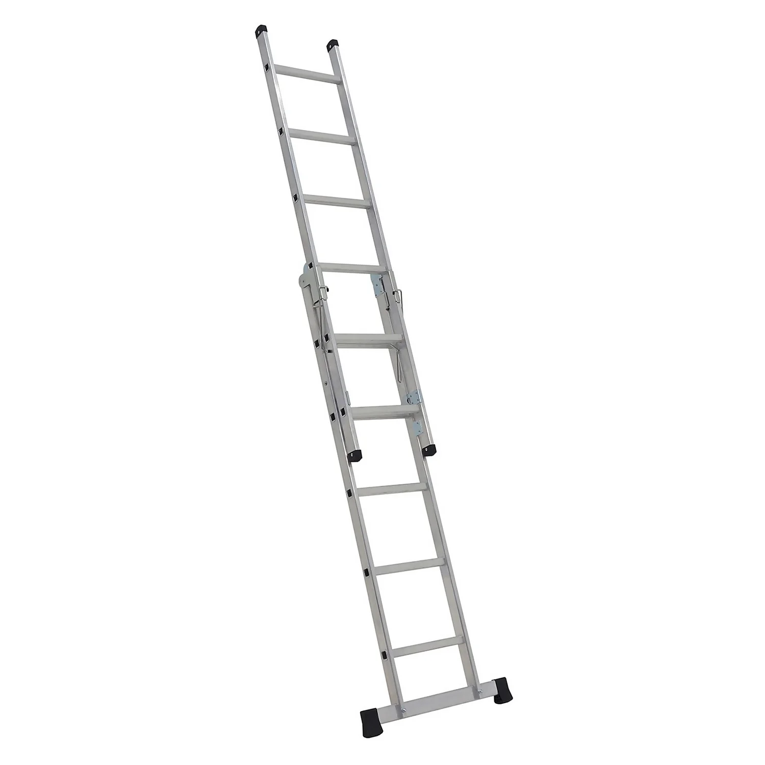 The Rhino 3 in 1 combination ladder is a versatile, multifunctional ladder with 3 different positional modes, a Step Ladder, extension ladder and stairwell ladder to cater for different work requirements. Constructed using heavy duty aluminium box section stiles, this ladder is lightweight, reliable and safe. Featuring a locking restraint for added ladder stability when in use, slip-resistant square rungs for comfort and security and a unique sliding mechanism for easy conversion to the 3 different positions.