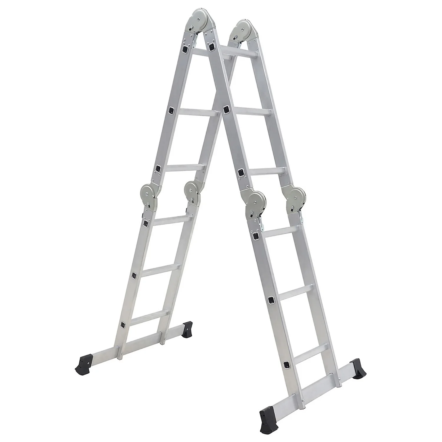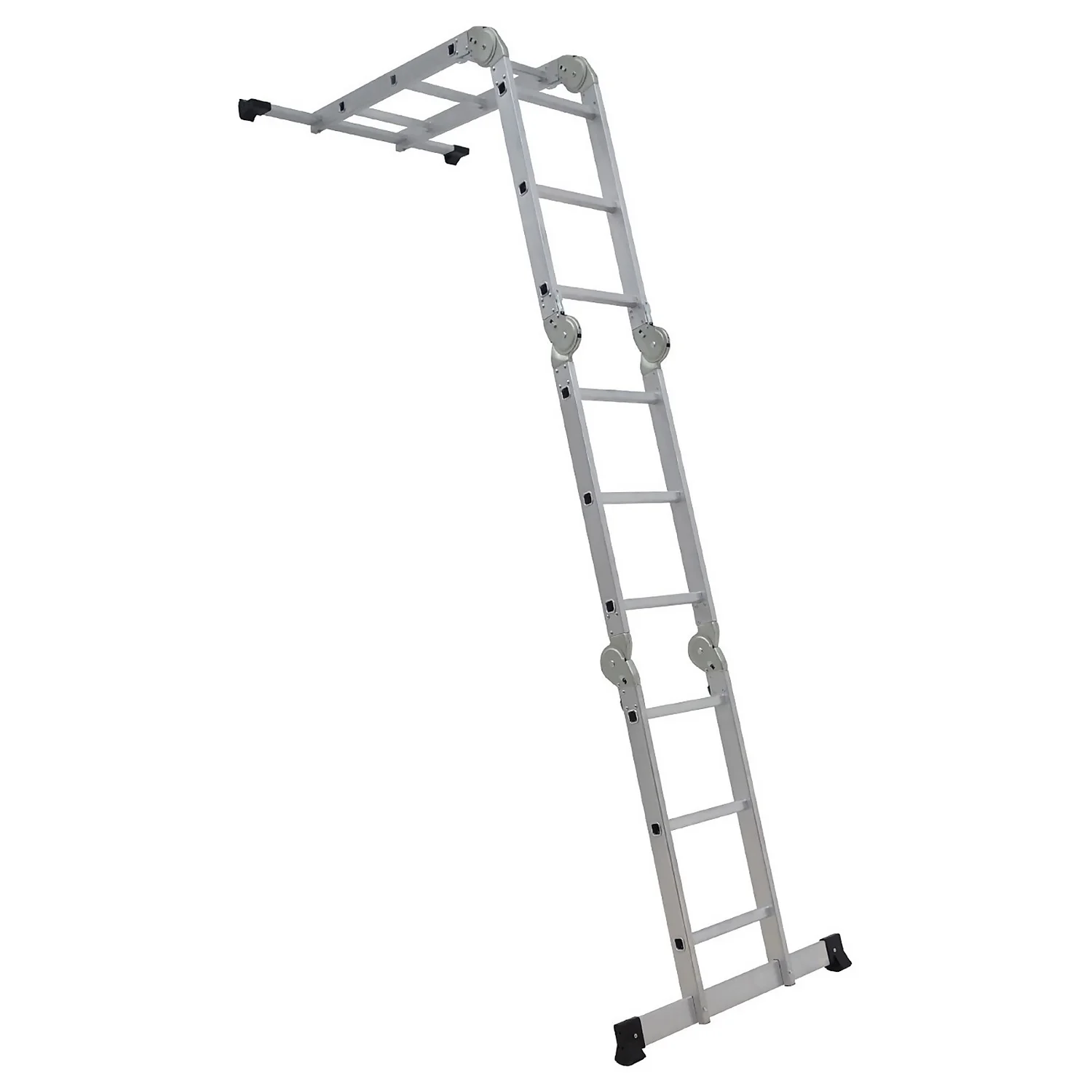 The Rhino Multi-Purpose 12 in 1 combination ladder with Platform is a super-versatile, multifunctional ladder with 12 different positional modes including a Step Ladder, extension ladder, stairwell ladder, level platform, stairwell platform, plus more. Features include a click lock hinge system, stabiliser bars and a removeable slip-resistant work platform. The ladder is also easily foldable for convenient transportation and storage.
