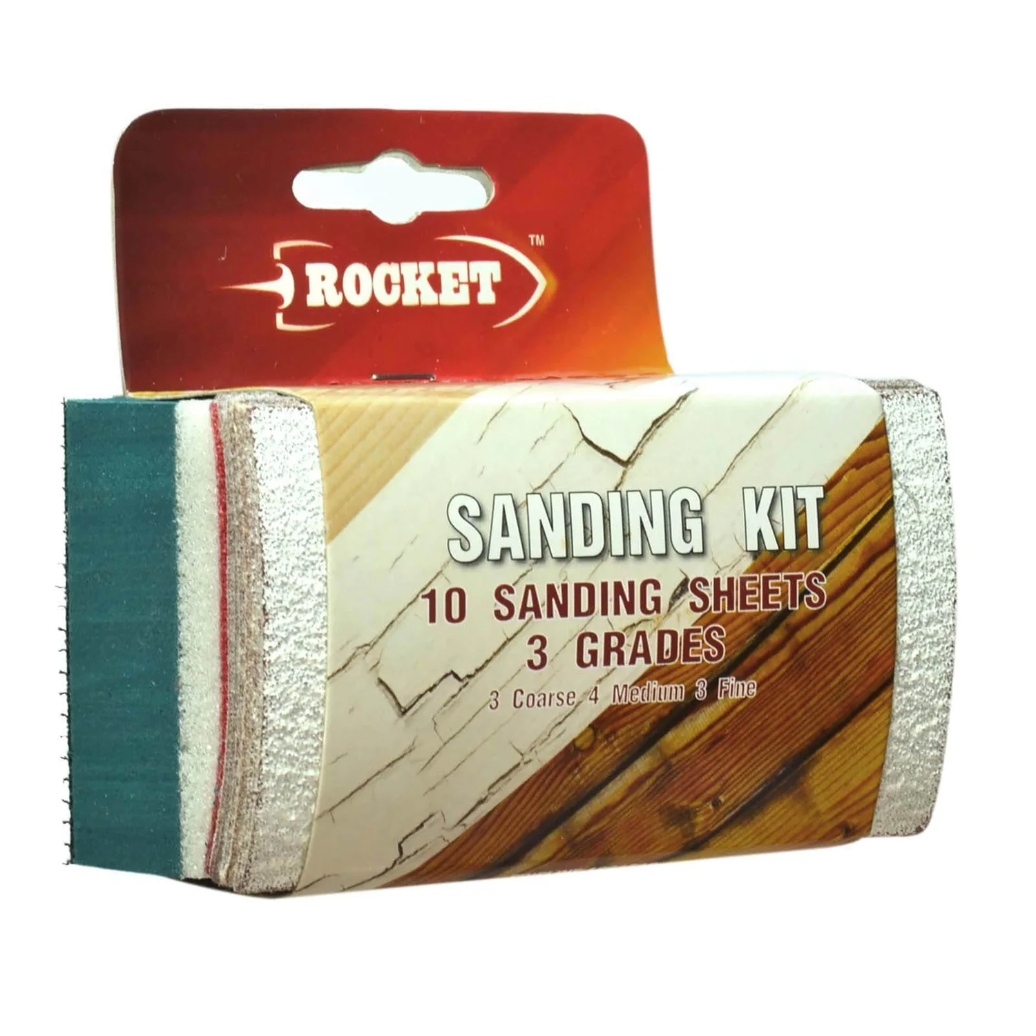 A premium sanding kit including 10 assorted sheets of premium, non-clog sandpaper.