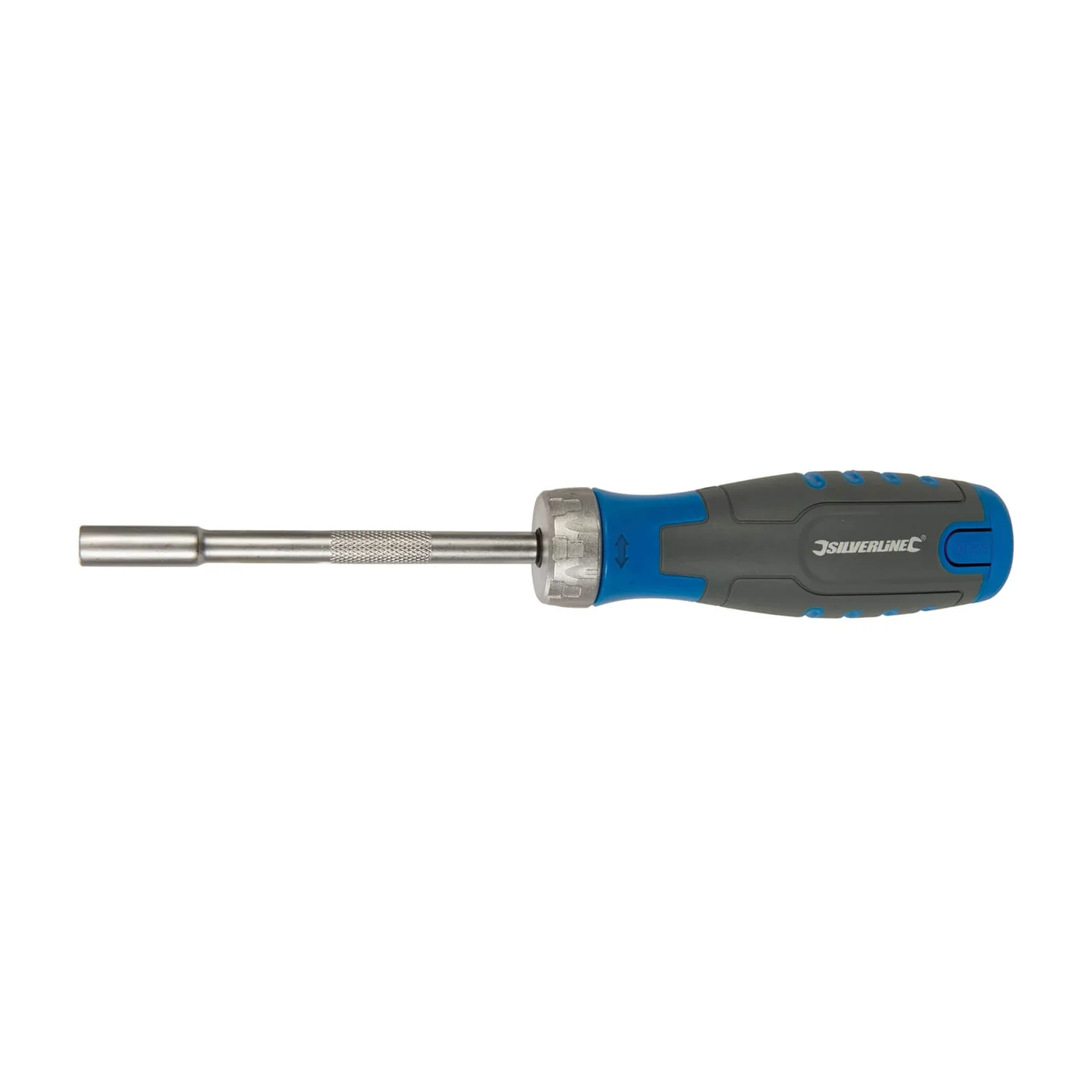 Allows access to obscure and confined fixings. 3-position ratchet action, 1/4 magnetic drive sockets and soft-grip driver handle for firm control. Forward, reverse and locked positions. Bits are cleverly stored in the rotating handle.