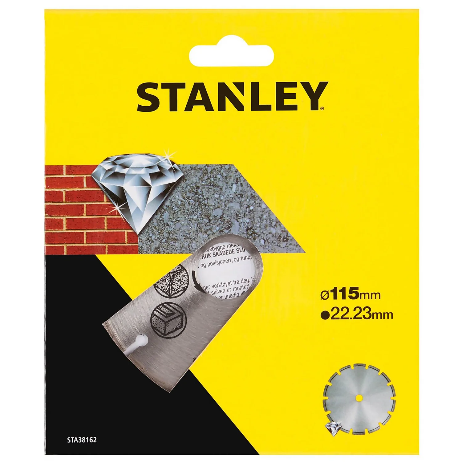 The Stanley 115mm Segmented Rim Cutting Disc has been designed for heavy duty intensive and prolonged cutting of hard materials. The diamond continuous segmented rim can be used for fast cutting of stone, concrete and thermal block. The cutting disc is suitable to attach to most 115mm disc angle grinders.