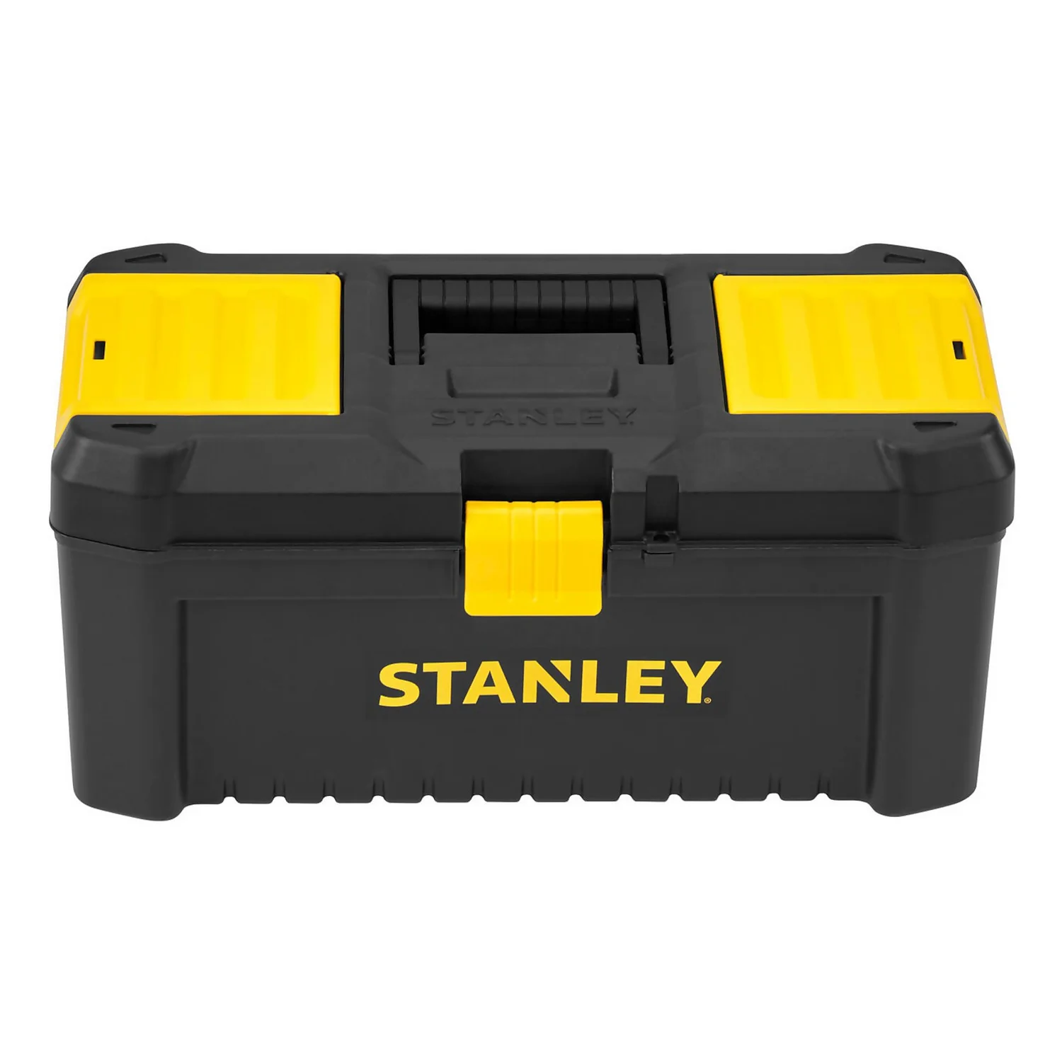 The STANLEY Essential 16″ Toolbox is a perfect storage solution for organising your tools and accessories. This toolbox features two organiser compartments built within the top of the lid which can be used to store small parts. A removable organizer tray has been added inside to help arrange components. The toolbox also has an ergonomic handle and secure plastic locking latches for guaranteed smooth opening and closing of the lid. A top padlock eye has been included to keep your items safe and secure.
