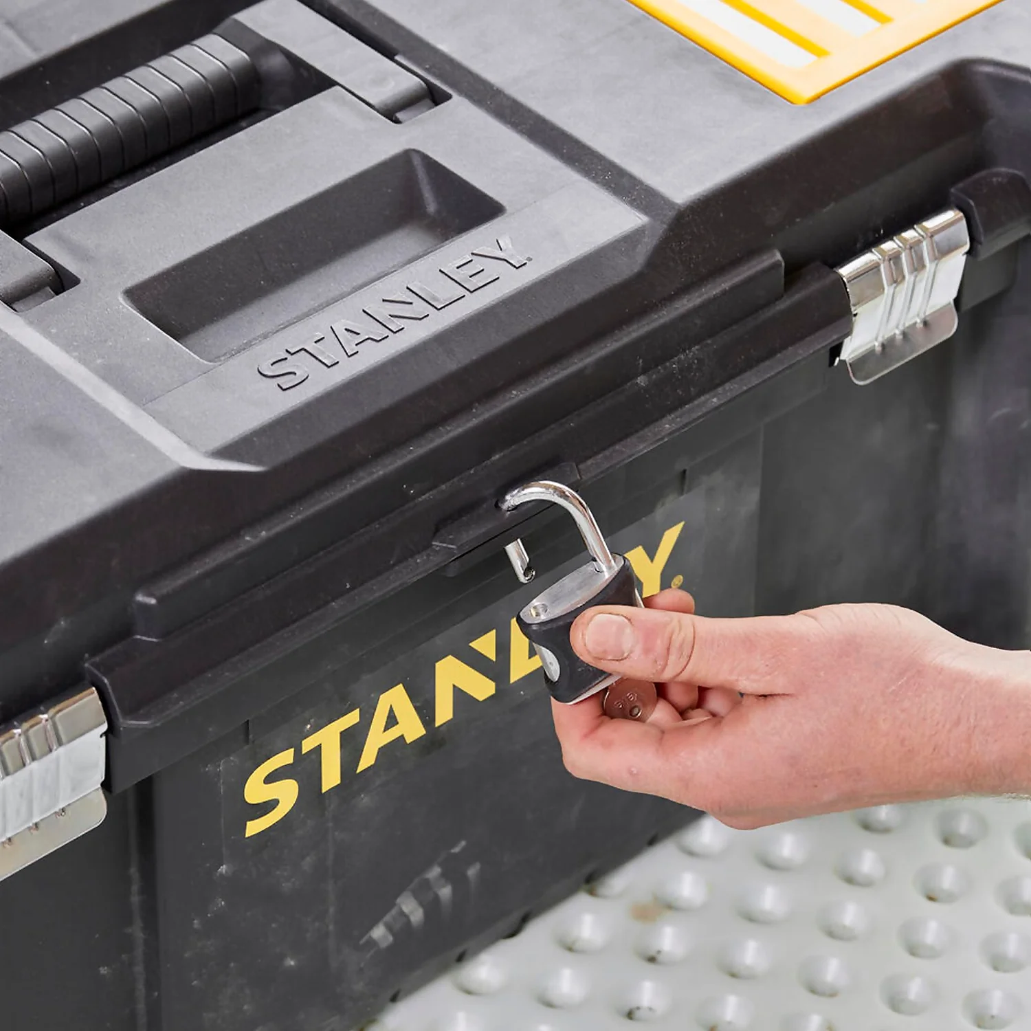 The STANLEY Large 26″ Toolbox is a perfect storage solution for organising your tools and accessories. This toolbox features two organiser compartments built within the top of the lid which can be used to store small parts. A removable organizer tray has been added inside to help arrange components. A top padlock eye has been included to keep your items safe and secure.