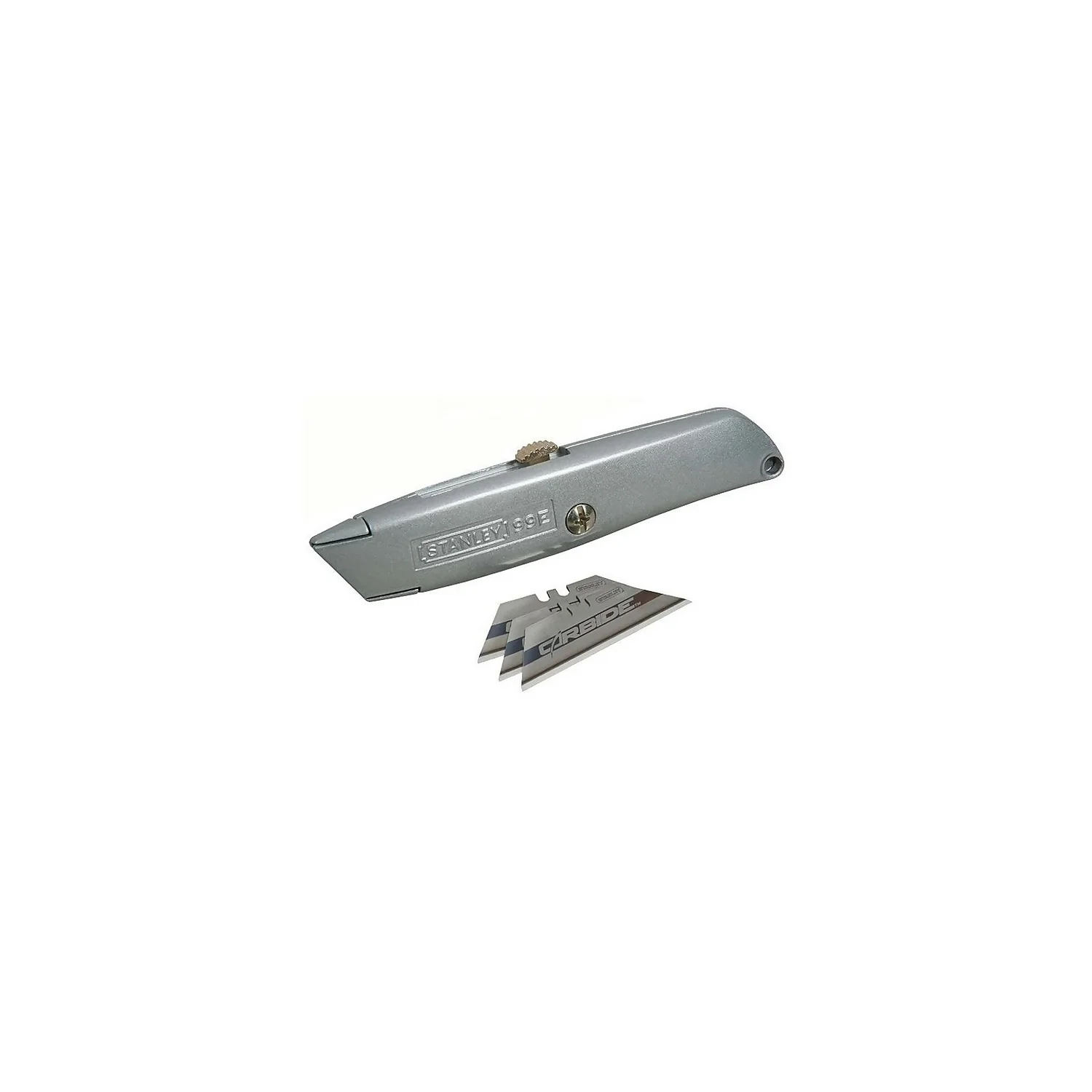 The STANLEY 99E Knife provides a flexible solution to all your utility knife needs. It features 5 retractable blade positions, allowing for wider usage for a variety of cutting applications. The precision die cast zinc body provides a lightweight and strong design. With safety in mind, the knife includes an interlocking nose that firmly secures the blade into the knife. Included within this kit are 3 blades. Ideal for heavy users, such as plasterers and carpet fitters.
