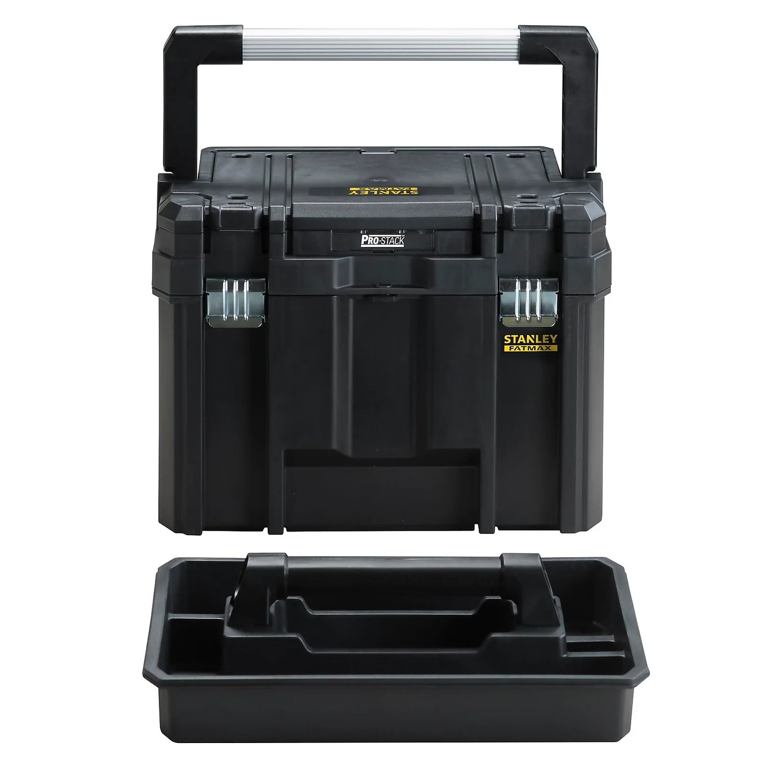 The STANLEY FATMAX PROSTACK Open Tote is a 21.6 litre capacity toolbox (44 x 27.5 x 32 cm) that is part of an interlocking, stackable, portable storage system, offering real versatility, whatever the task. Packed full of user-friendly features, the PROSTACK system is the perfect partner to help you resolve your storage needs.