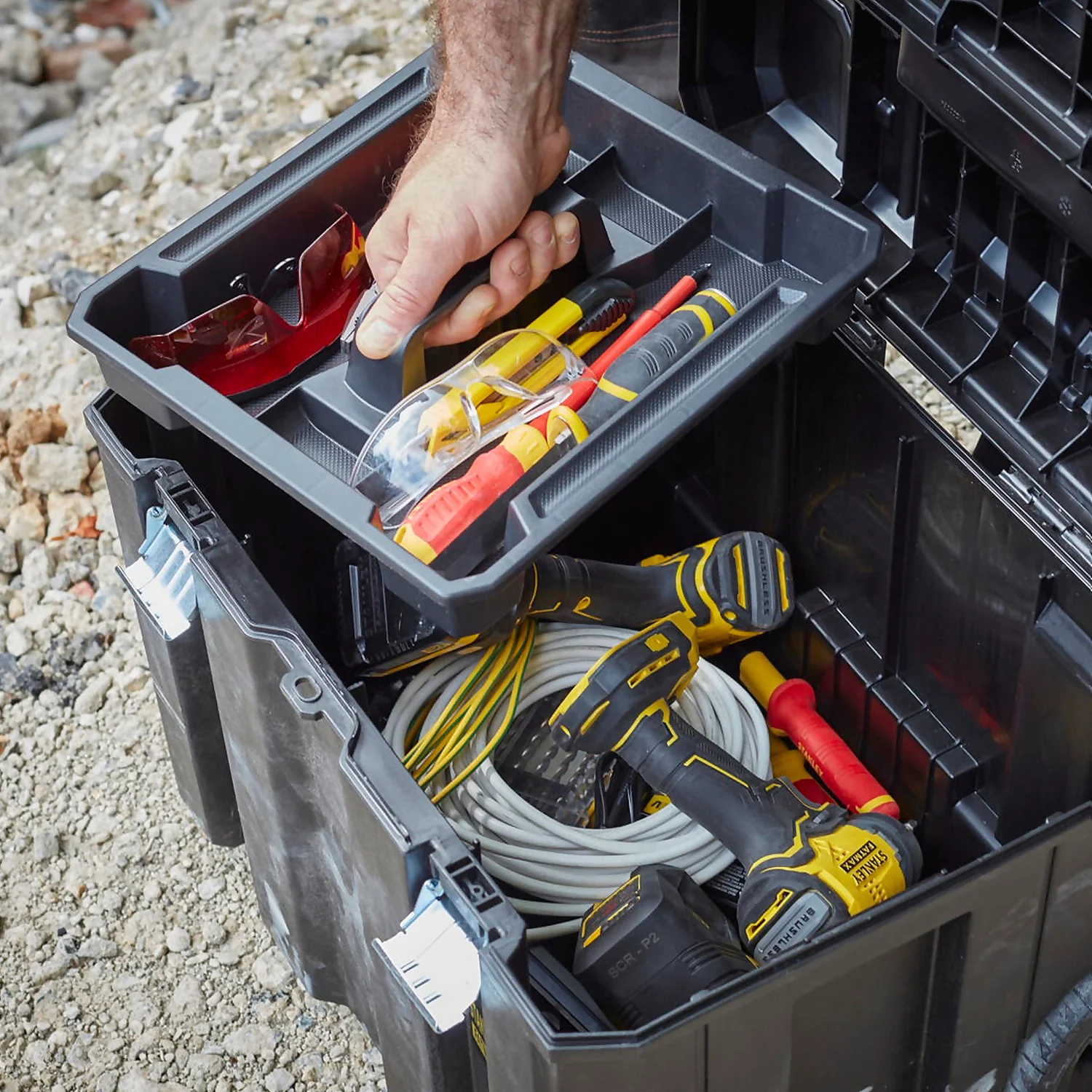 The STANLEY mobile storage box has been designed for DIY-ers and anyone that would require limitless customised storage around the home. Comes with PROSTACK mobile storage box.