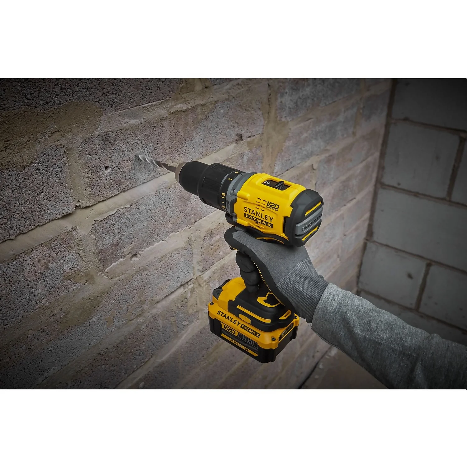 The 18V STANLEY FATMAX V20 Brushless Hammer Drill with 2 x 4.0Ah Lithium-ion Batteries and Kit Box features new and improved battery technology, with no memory effect and minimal self-discharge. The V20 Lithium-ion battery pack is ready to go to work whenever you are and wherever the job takes you, with an integral battery state of charge indicator for convenient monitoring of battery charge levels. Including a powerful motor providing up to 1,900 RPM and 55Nm of torque for efficient drilling and screwdriving into wood, metal and plastic and generating a powerful hammer action providing up to 25,500 BPM for efficient drilling into masonry.