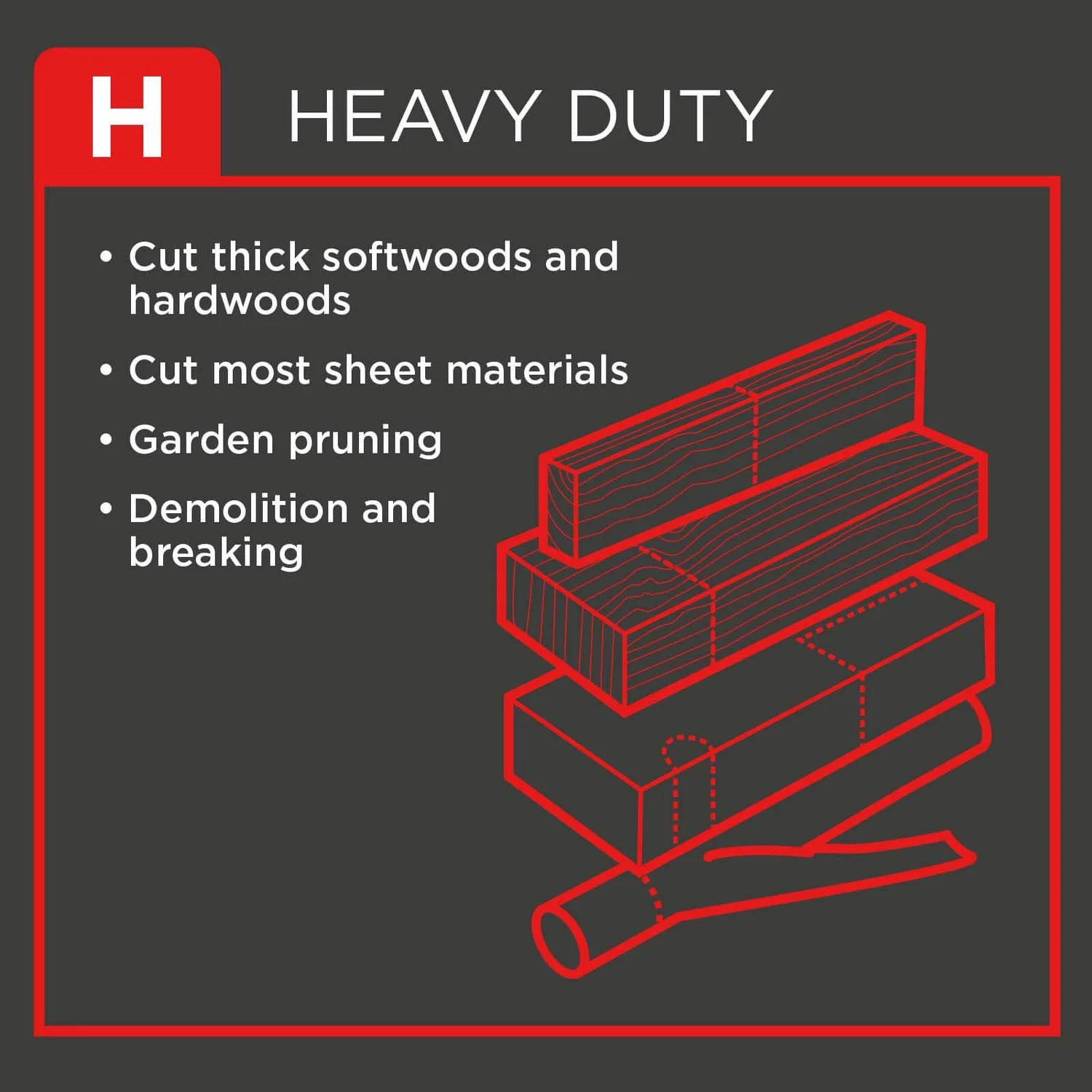 Ideal for cutting large sheet materials such as MDF, Plywood, OSB, chipboard, laminate, hard and softwood. Designed to be used on wood or plastic (depending on blade).
