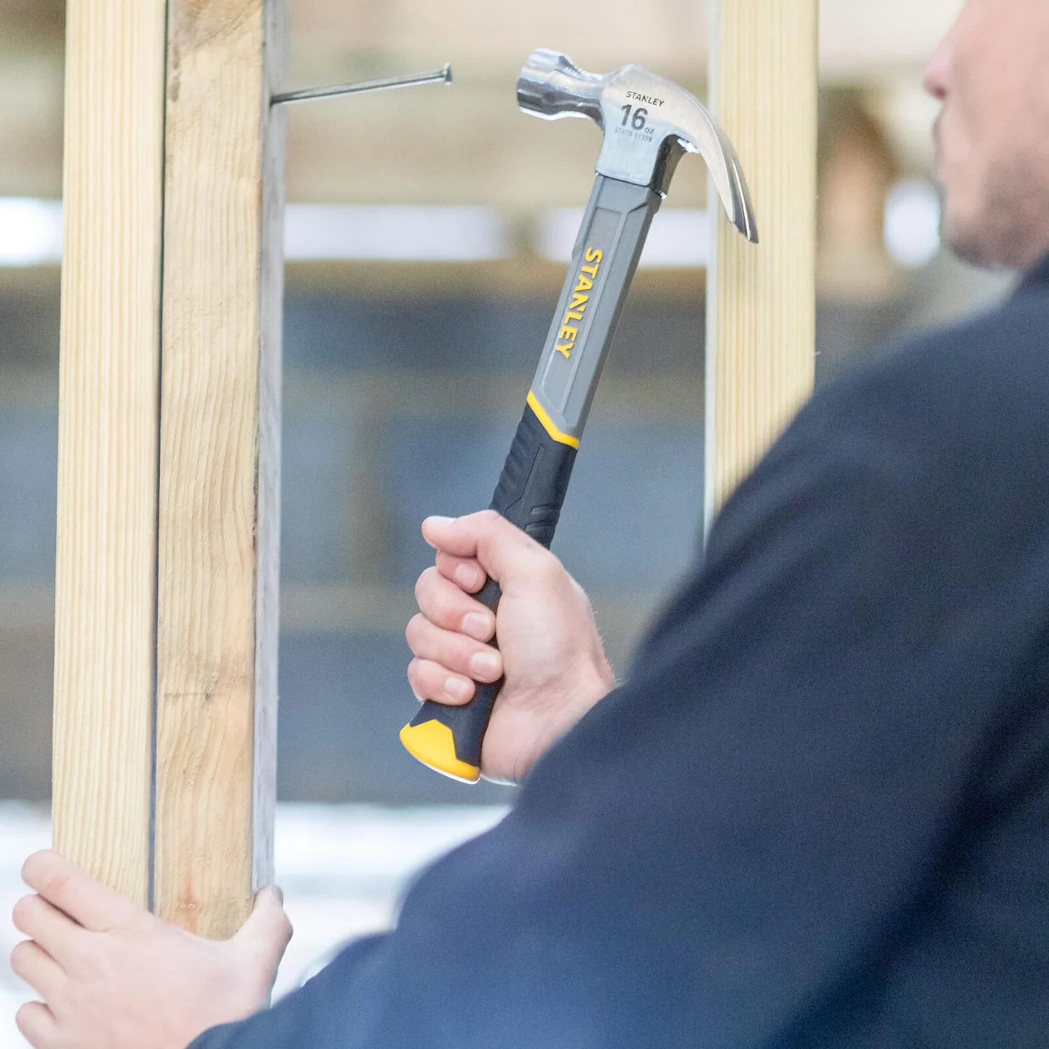 The STANLEY 16oz Fiberglass Curved Claw Hammer offers an innovative lightweight solution for all your hammering needs, constructed with a fiberglass core for added strength and durability. Designed with a bi-material handle for increased comfort and anti slip grip. The head of the hammer has been epoxy bonded to ensure it doesn’t separate from the body during normal application. The hammer includes a new and improved overstrike protection feature which protects the shaft of the hammer against impacts for a greater life. The curved claw is ideal for prying and removing nails from wood.