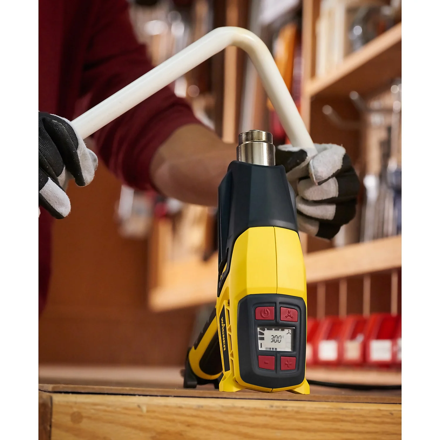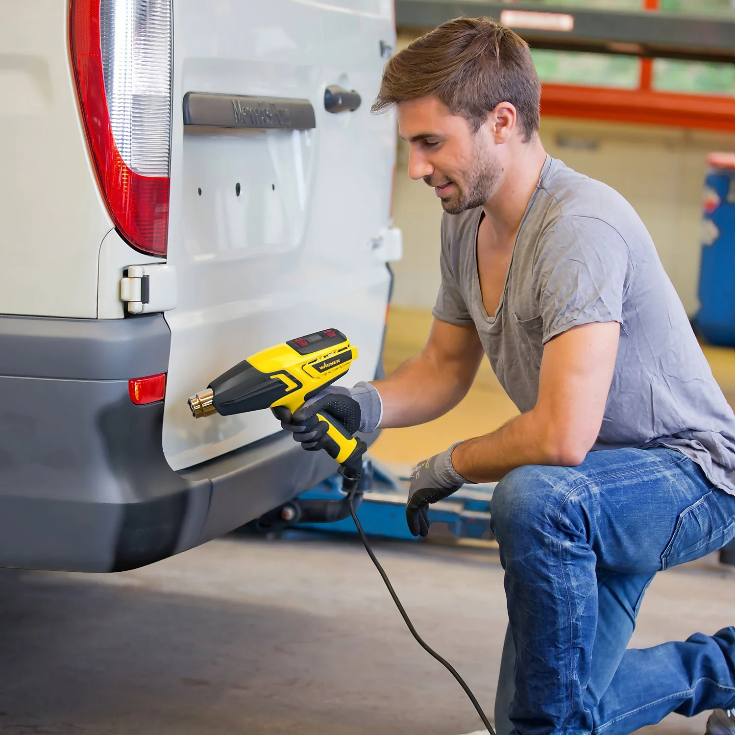 Thermal protection sensors regulate the heat, while a heat-resistant nozzle cover with side fins prevents the hot nozzle from touching surfaces. Ergonomic design with soft grip handle for maximum user comfort. Dual stabilisers and an angle-lock feature on blow-moulded carry case ensure safe hands-free operation.