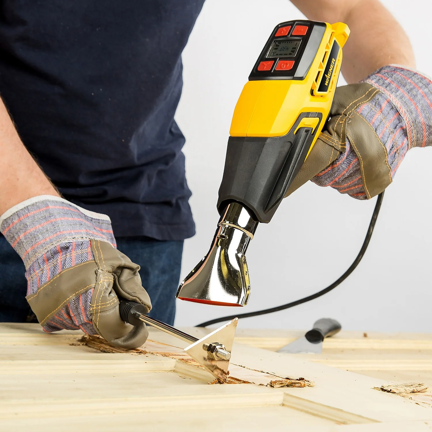 Professional electronic heat gun for stripping paint, bending pipes, heat shrinking and much more. Features LCD digital display with fully adjustable temperature range. Offers memory function for last temperature recall. 6-air flow settings and a cool-down mode help to prolong heater element’s life.
