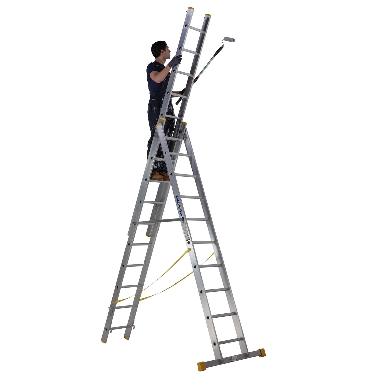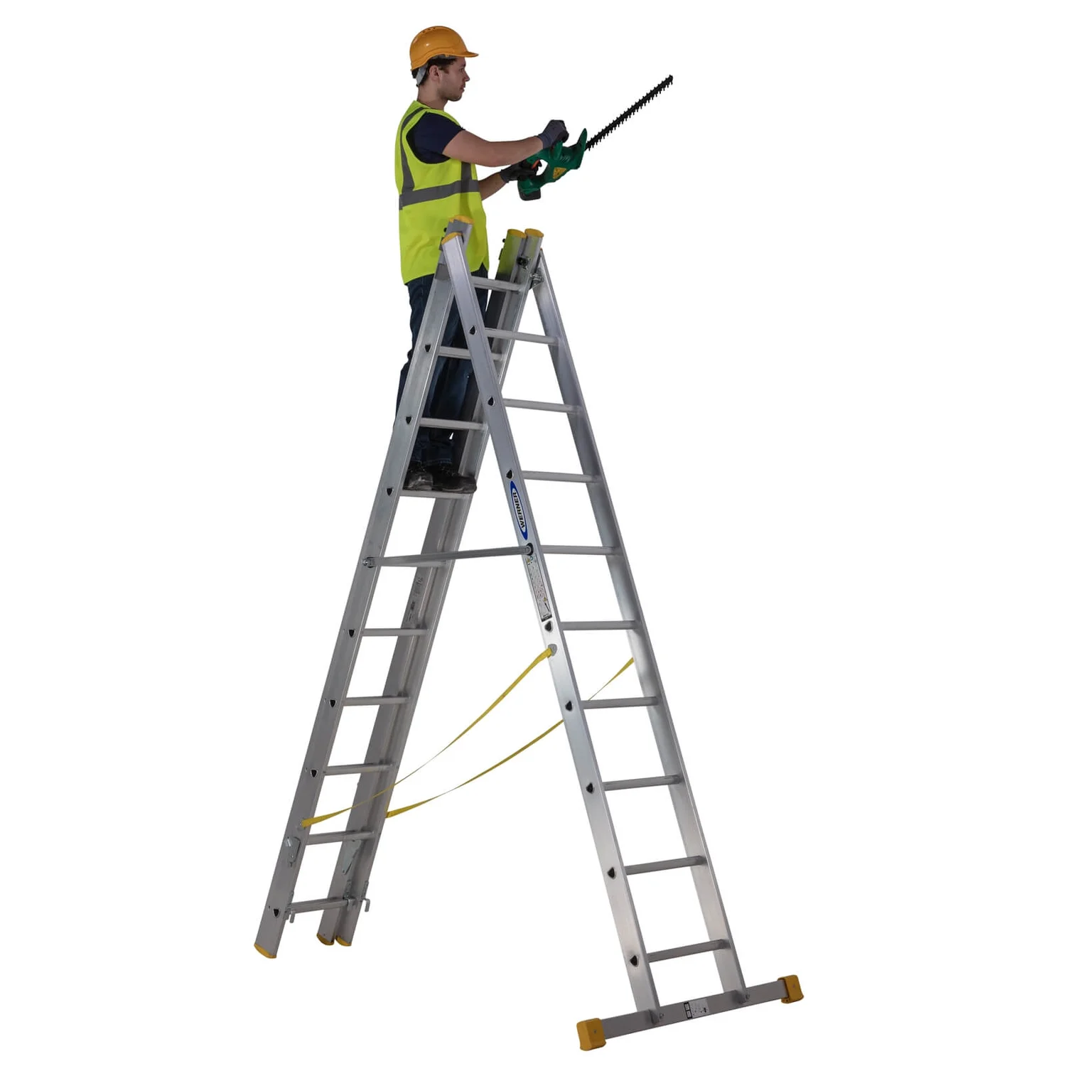 - Combines a large stepladder, extension ladder, stairwell ladder and freestanding extension ladder all in one product