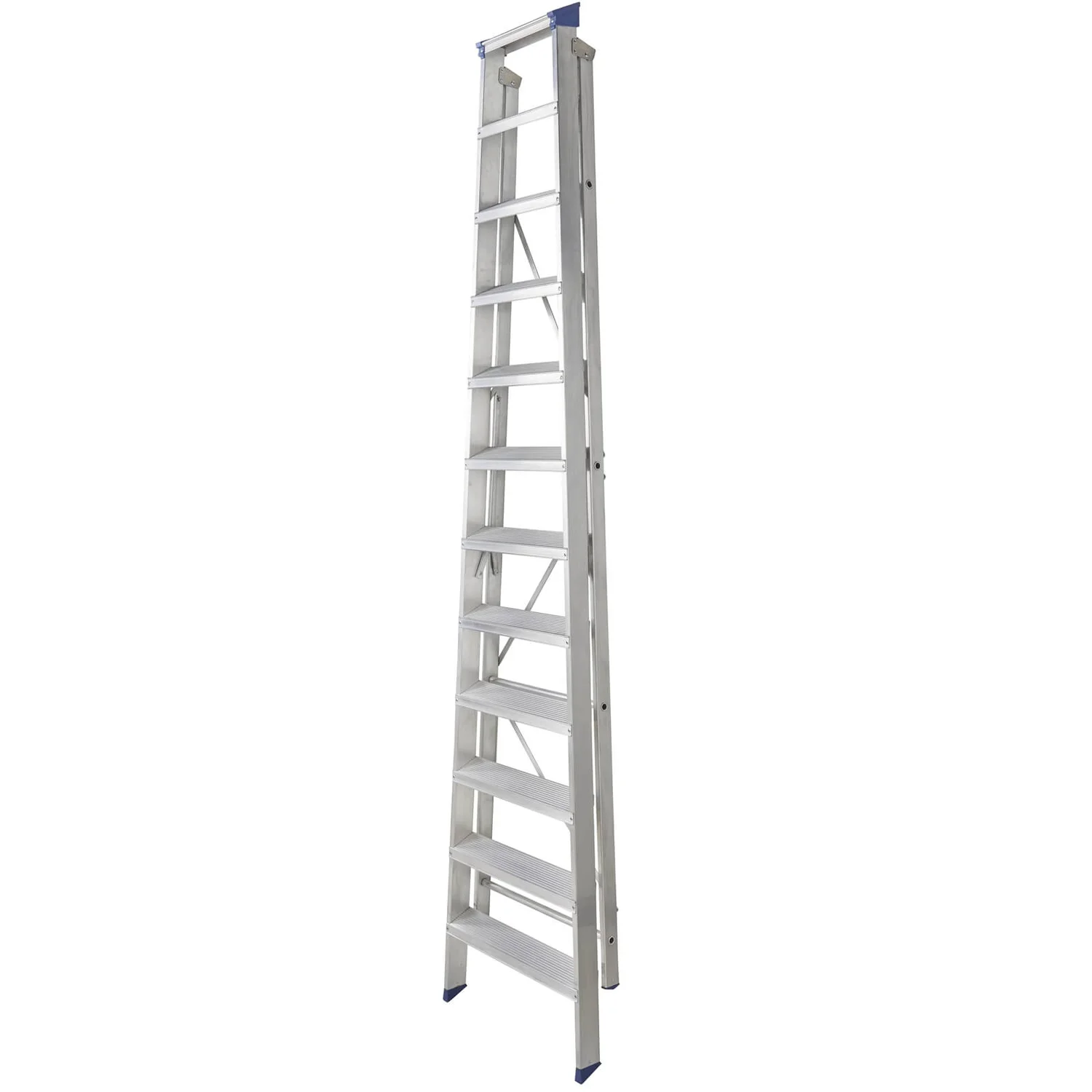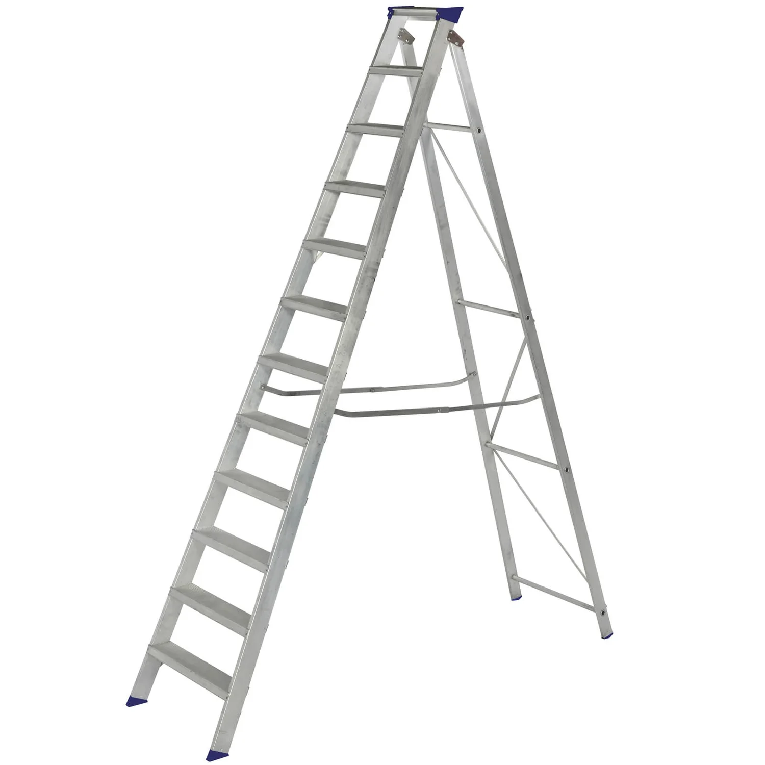 The Werner 12 tread MasterTrade Step Ladder is the traditional builder’s ladder engineered using high grade aluminium box section stiles and heavy gauge plastic edge caps for a smoother profile. With heavy duty internal spreaders, rear frame cross tubes and large slip-resistant feet, this ladder is exceptional robustly and built to last.